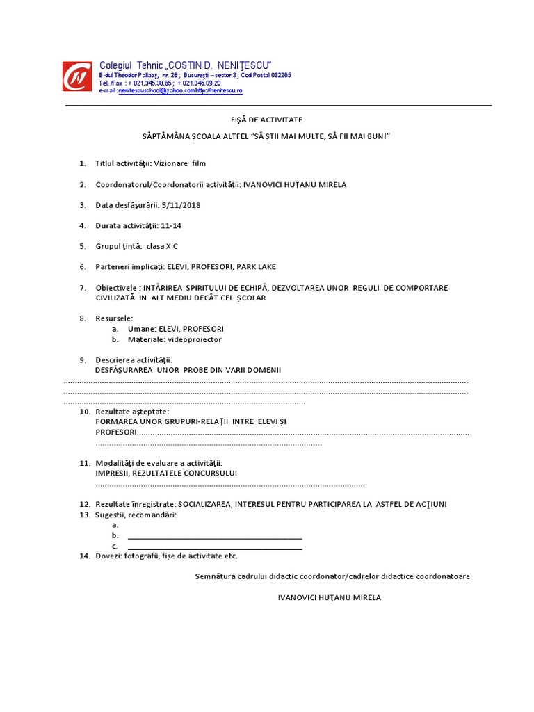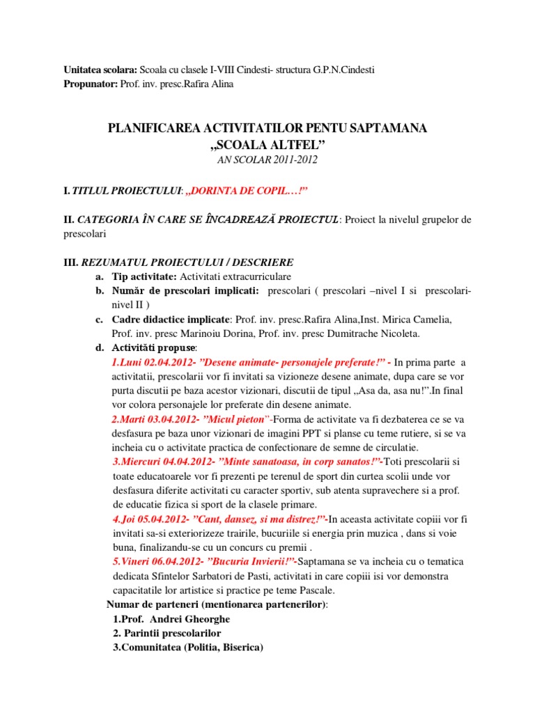 Invitati i sa faceti un plan. 54 coordonatorii activitatii nume si prenume functie date de contact velicu laurentiu catrinescu antoneta. Modelele de fișe de activitate pentru programul școala altfel 2016. Fisa a fost propusa de isj pentru activitatile.