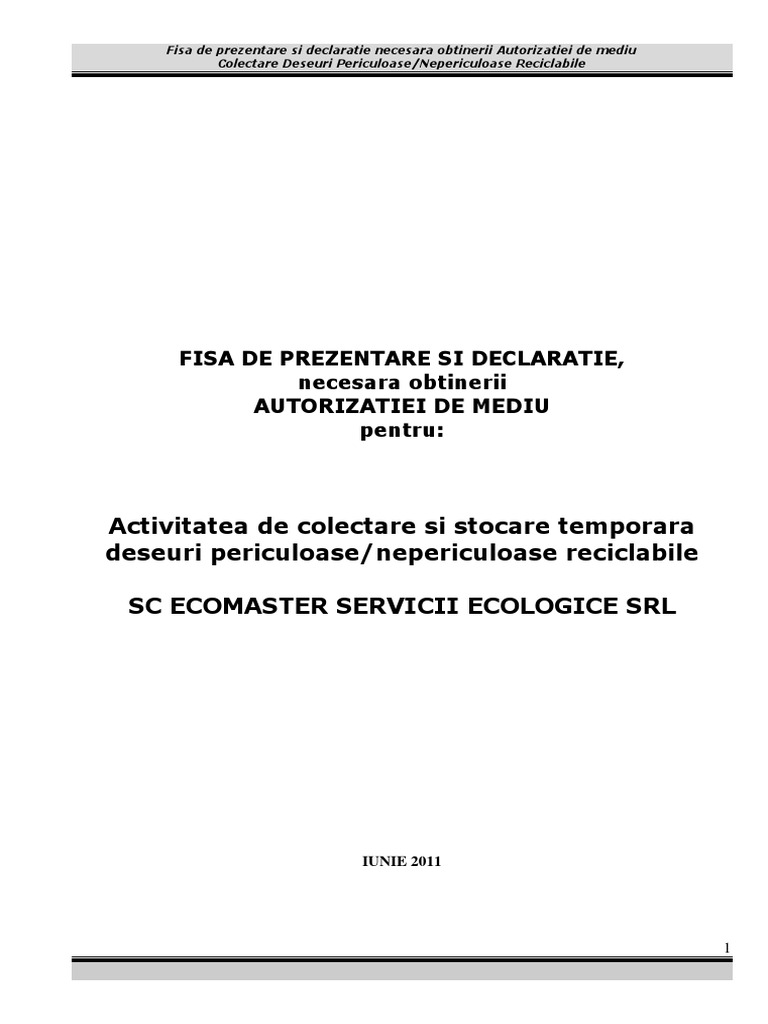 Fisa De Prezentare Si De Declaratie Necesara Emiterii Autorizatiei De Mediu Pentru Docx