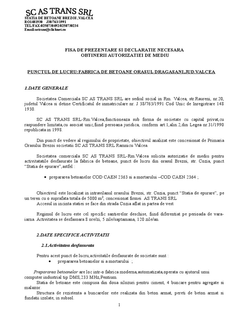 Fisa De Prezentare Si Declaraţie Sc Vandamah Srl Completată In Conformitate Cu Solicitările Apm Galați Precizate In Adresa Nr 23705 Pdf Free Download