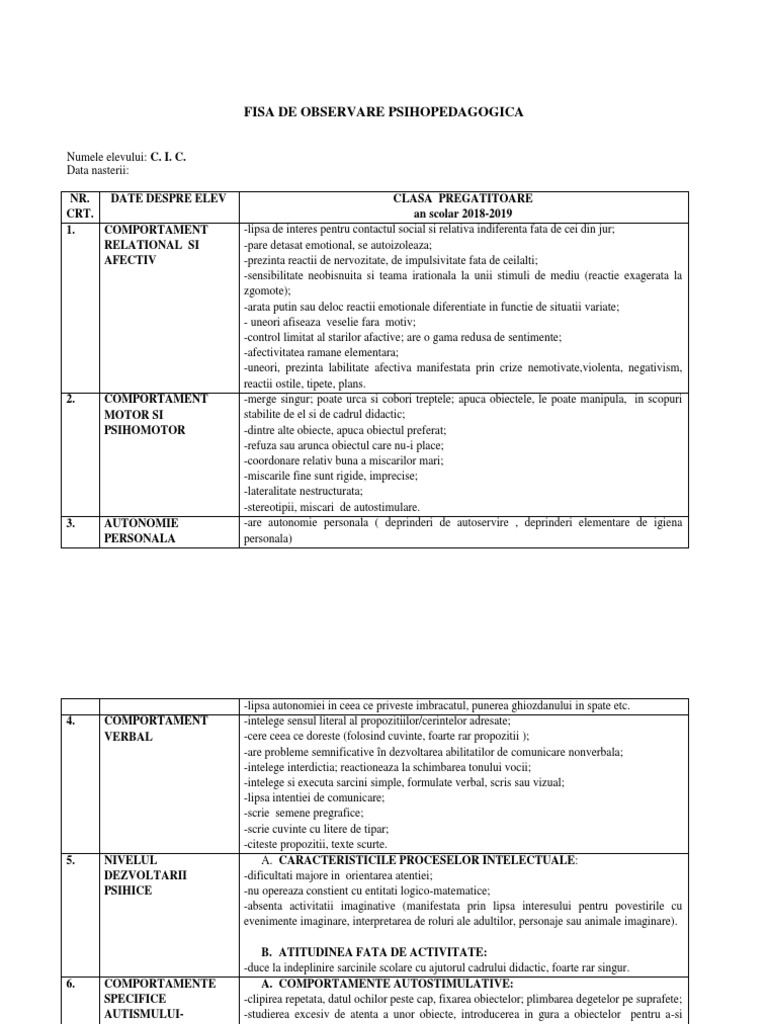 Doc Fisa De Caracterizare Psihopedagogica Sandu Oana Georgiana Academia Edu