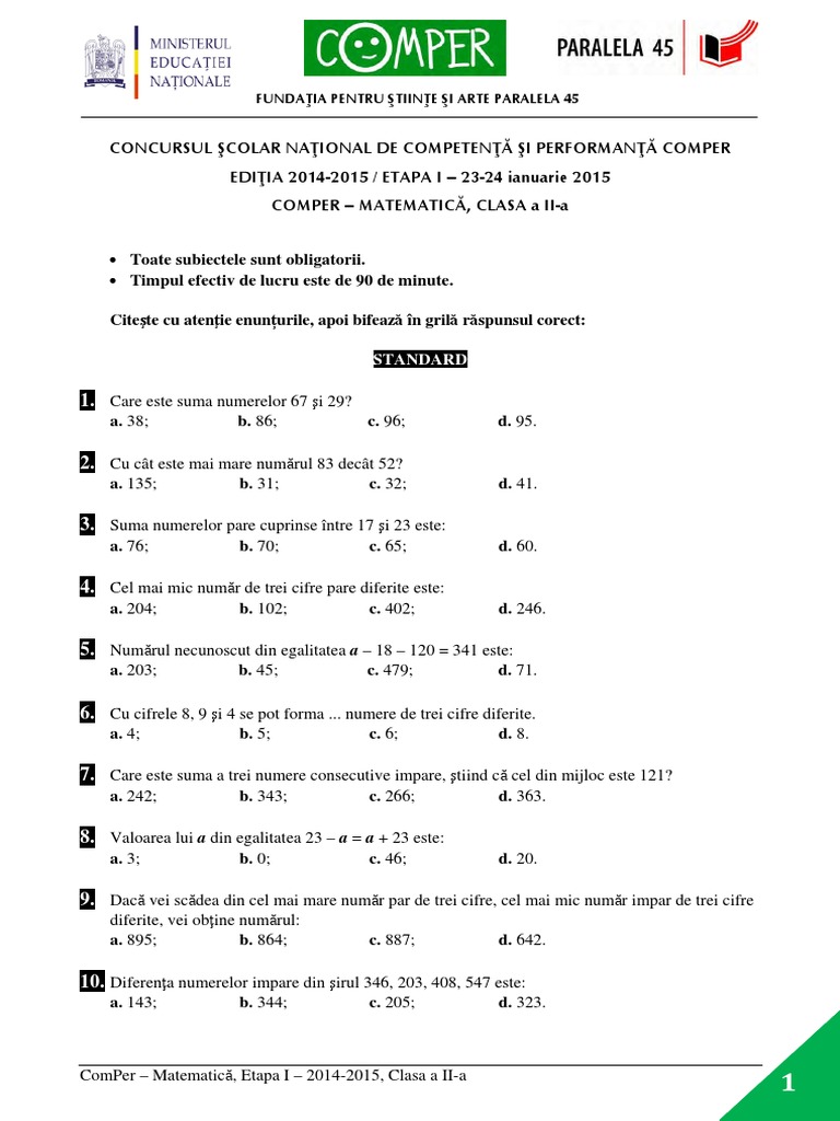 Subiecte Matematică Comper 2019 Anunţ Important Pentru Elevi Părinţi Si Profesori Bareme Comper Matematică Etapa I Romaniatv Net Mobi