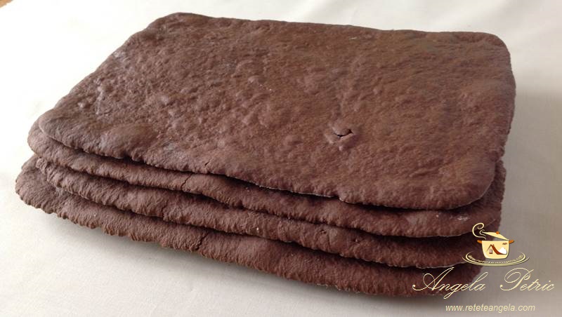 Imi ies 3 foi si la tai in doua in total 6 foi. Ingredientele de mai jos sunt pentru 4 foi iar pentru coacere am folosit o tava de 27 35cm merge si o tava putin mai mare. Toate ingredientele se amesteca se imparte aluatul in 3 si se coc 3 foi pe fundul unei tavi sau intr o tava cu perete de max.