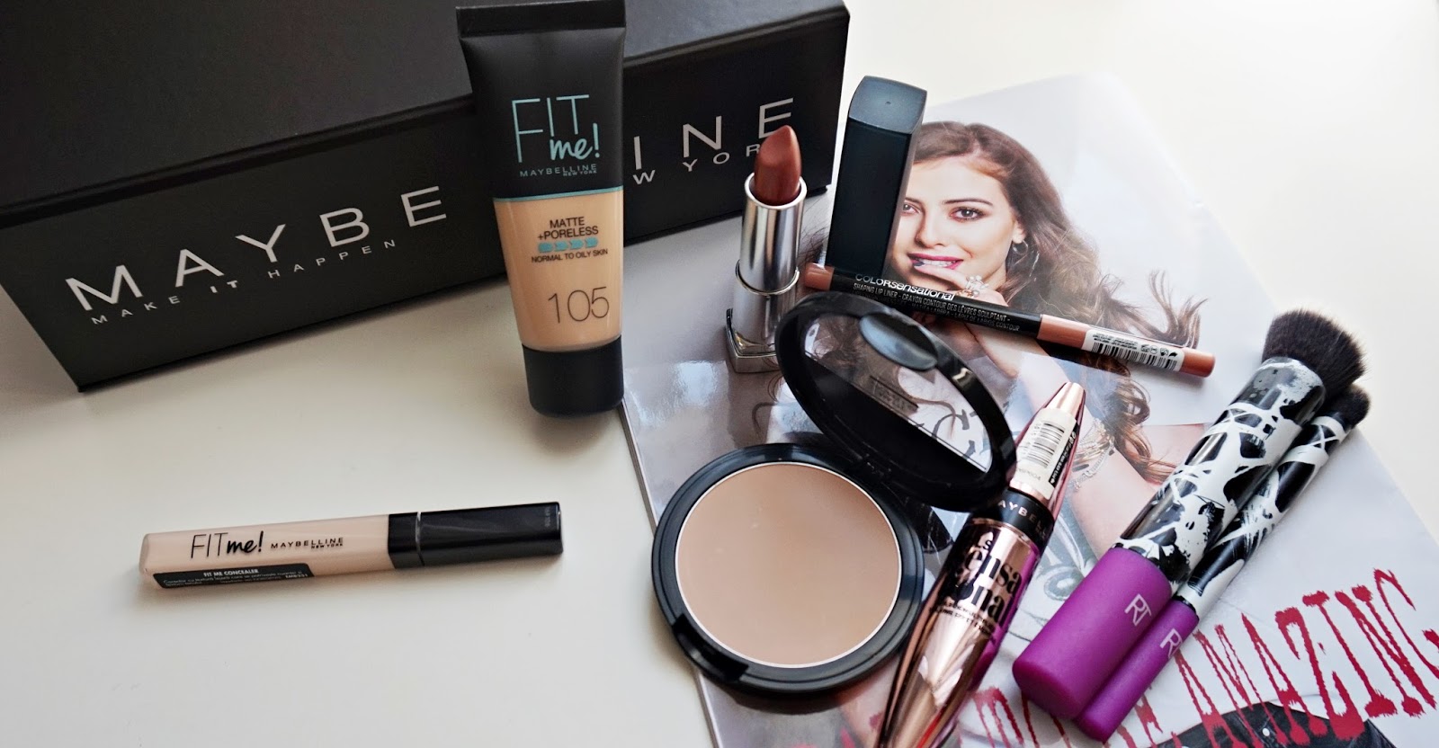 Maybelline Fit Me Matte Poreless Recenzie Pentru Tenul Mixt Cu Pori Foarte Dilatați Maybelline Fit Me Matte And Poreless Flatlay Makeup