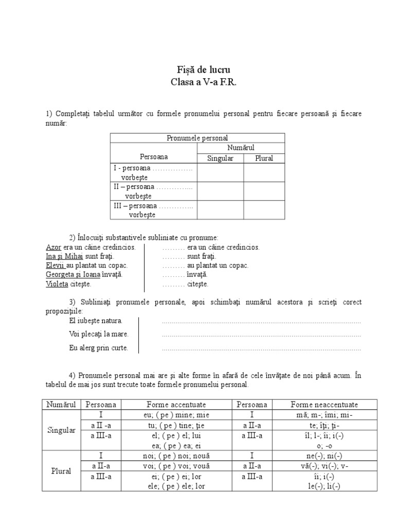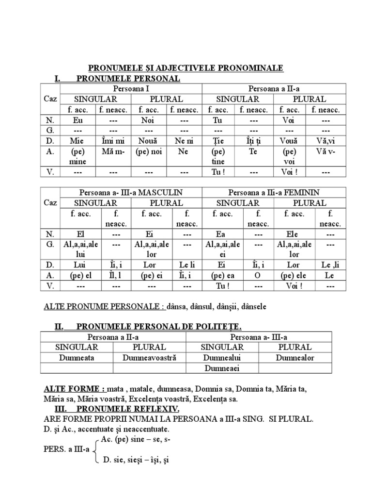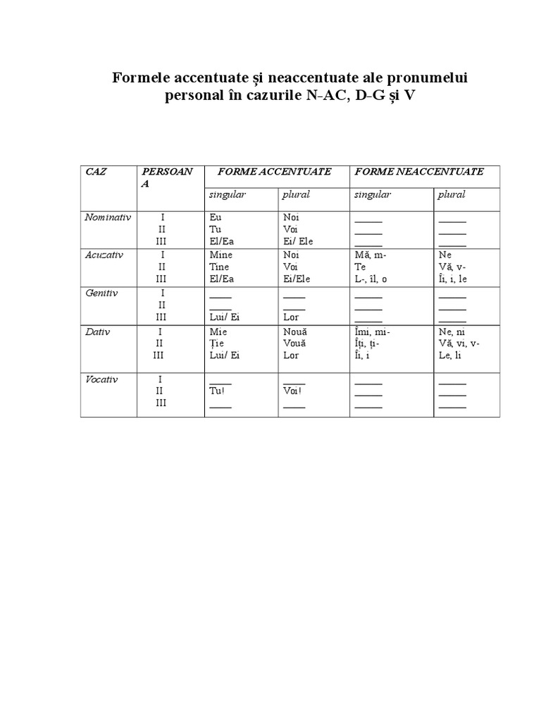 Pronumele Personal Tabel Doc