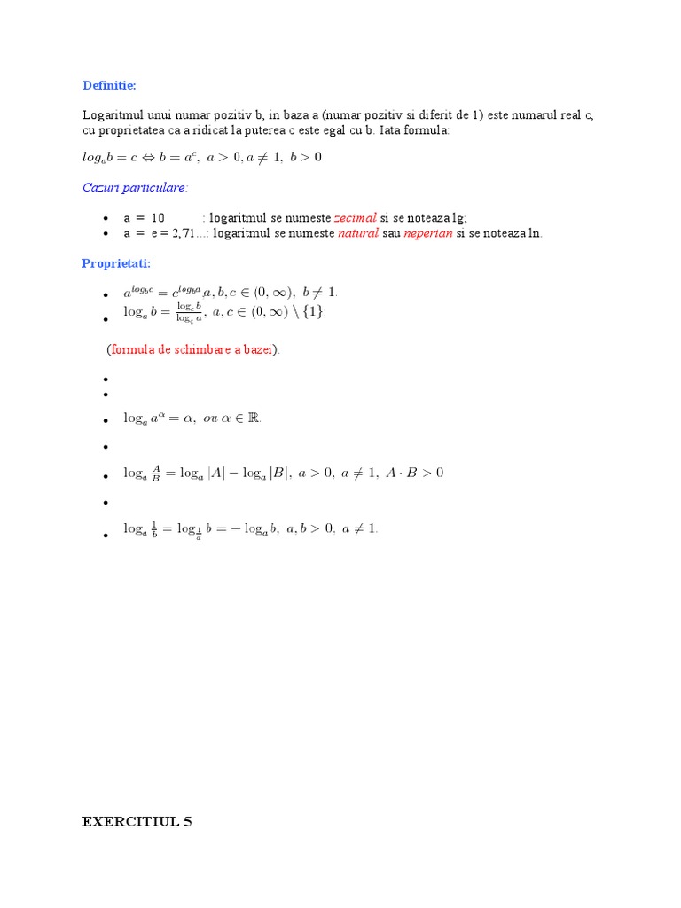 Logaritmul natural în baza e. Logaritmul zecimal în baza 10. și ceea ce este echivalent cu. Formula de schimbare a bazei.